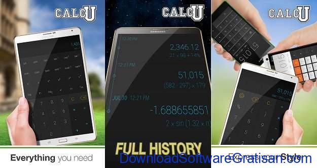 Calcu adalah salah satu aplikasi kalkulator paling populer untuk Android. Calcu memiliki semua fitur dasar kalkulator. Beberapa fitur yang dimiliki termasuk riwayat perhitungan, kunci memori, berbagai fitur modifikasi, tema, dan kontrol gerakan. Calcu memang bukan kalkulator ilmiah lengkap, tetapi memiliki fungsi yang cukup untuk melampaui apa yang biasanya kamu temukan di kalkulator dasar. Versi gratis dari aplikasi ini berisi iklan.