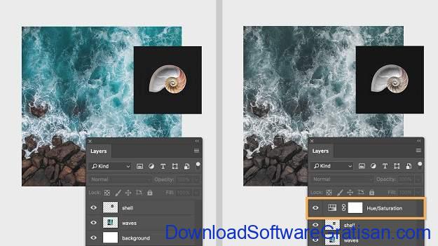 Layer adalah tulang punggung kemampuan Photoshop. Kamu dapat menggunakan “adjustment layers” yang non-destruktif untuk mengubah tampilan gambar kamu tanpa mengubah piksel yang mendasarinya (sehingga tidak merusak foto atau gambar aslinya), tetapi kamu juga dapat menggabungkan layer gambar untuk menghasilkan montase canggih yang dibangun dari dua atau lebih gambar dan dicampur dengan layer mask dan mode campuran.